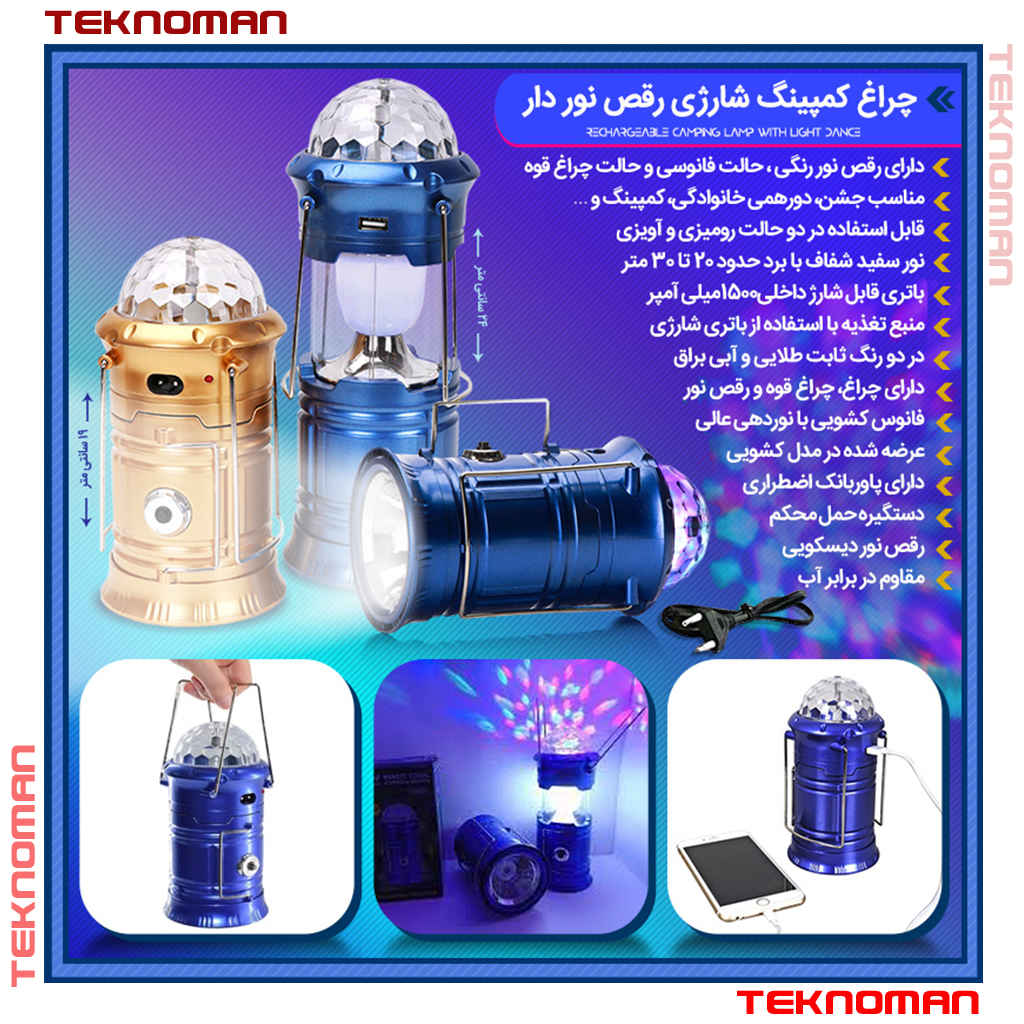 چراغ کمپینگ شارژی رقص نور دار