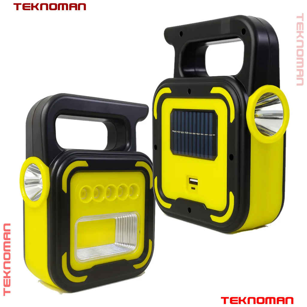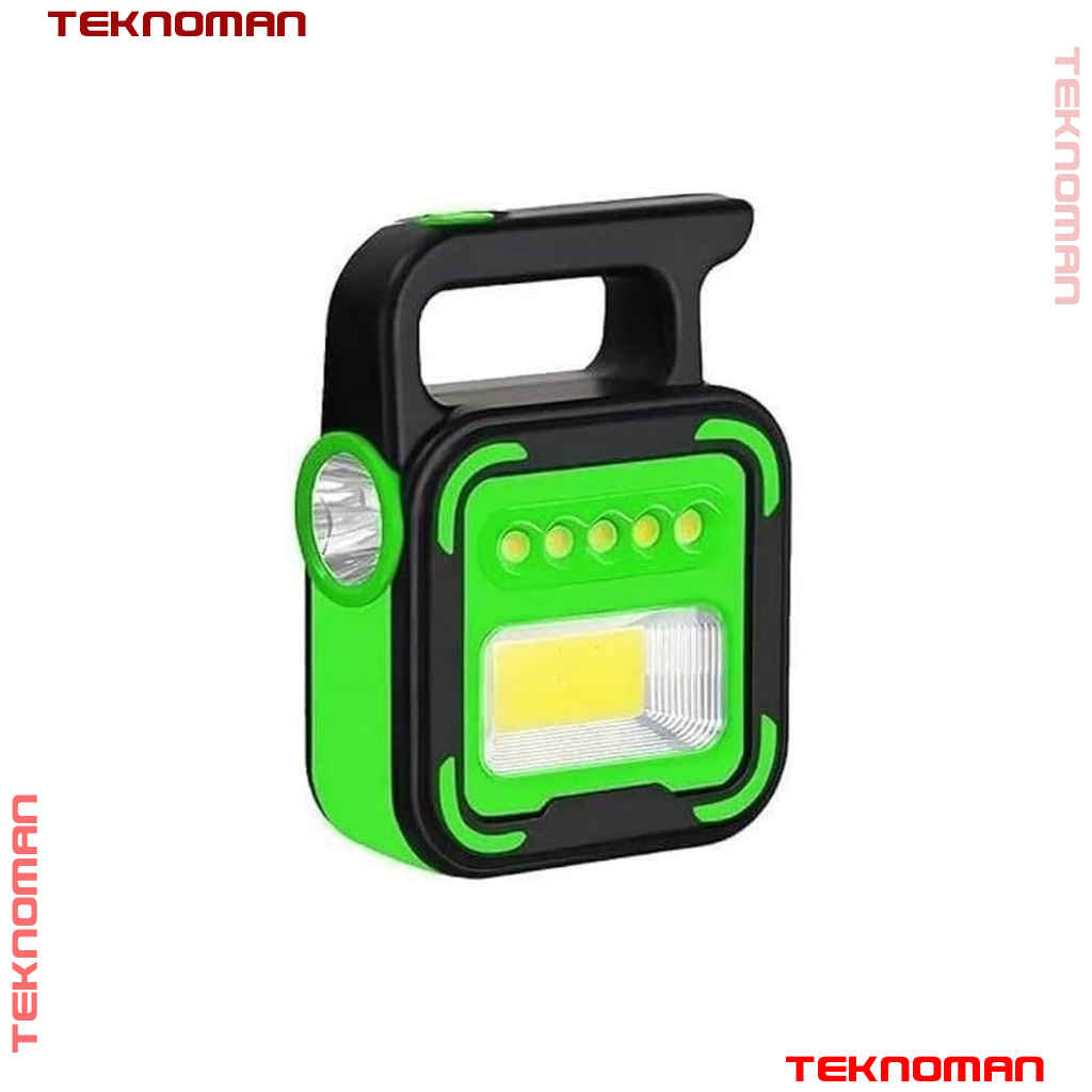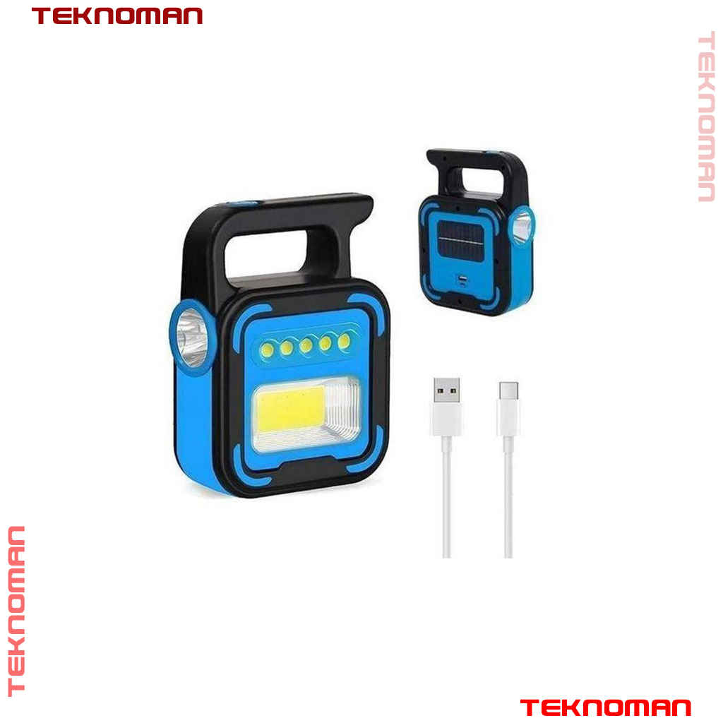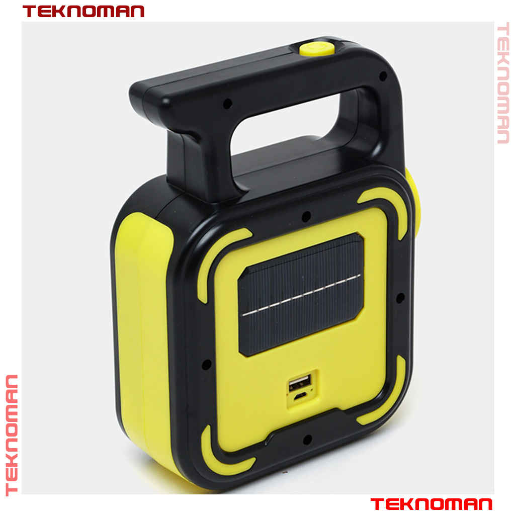 این چراغ و پروژکتور چندکاره با طراحی هوشمند و کاربردی، انتخابی ایده‌آل برای سفر، کمپینگ، تعمیرات و شرایط اضطراری است. وجود یک چراغ قوه LED قدرتمند در کنار دو چراغ جانبی از نوع COB و LED نوردهی گسترده، یکنواخت و با شدت مناسب را فراهم می‌کند.از لحاظ تأمین انرژی، محصول به‌صورت دوگانه کار می‌کند؛ هم از طریق پورت Micro USB شارژ می‌شود و هم به کمک پنل خورشیدی برای مواقعی که دسترسی به برق وجود ندارد. به همین دلیل همراهی مطمئن در سفر و طبیعت محسوب می‌شود.یکی از قابلیت‌های جذاب این چراغ، عملکرد پاوربانک آن است که امکان شارژ تلفن همراه و دستگاه‌های کوچک الکترونیکی را در شرایط ضروری فراهم می‌کند.