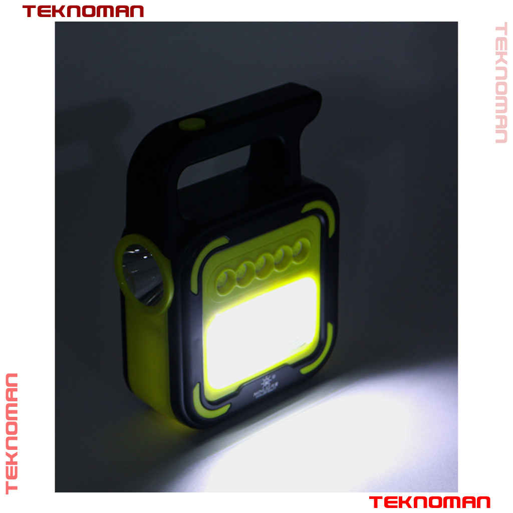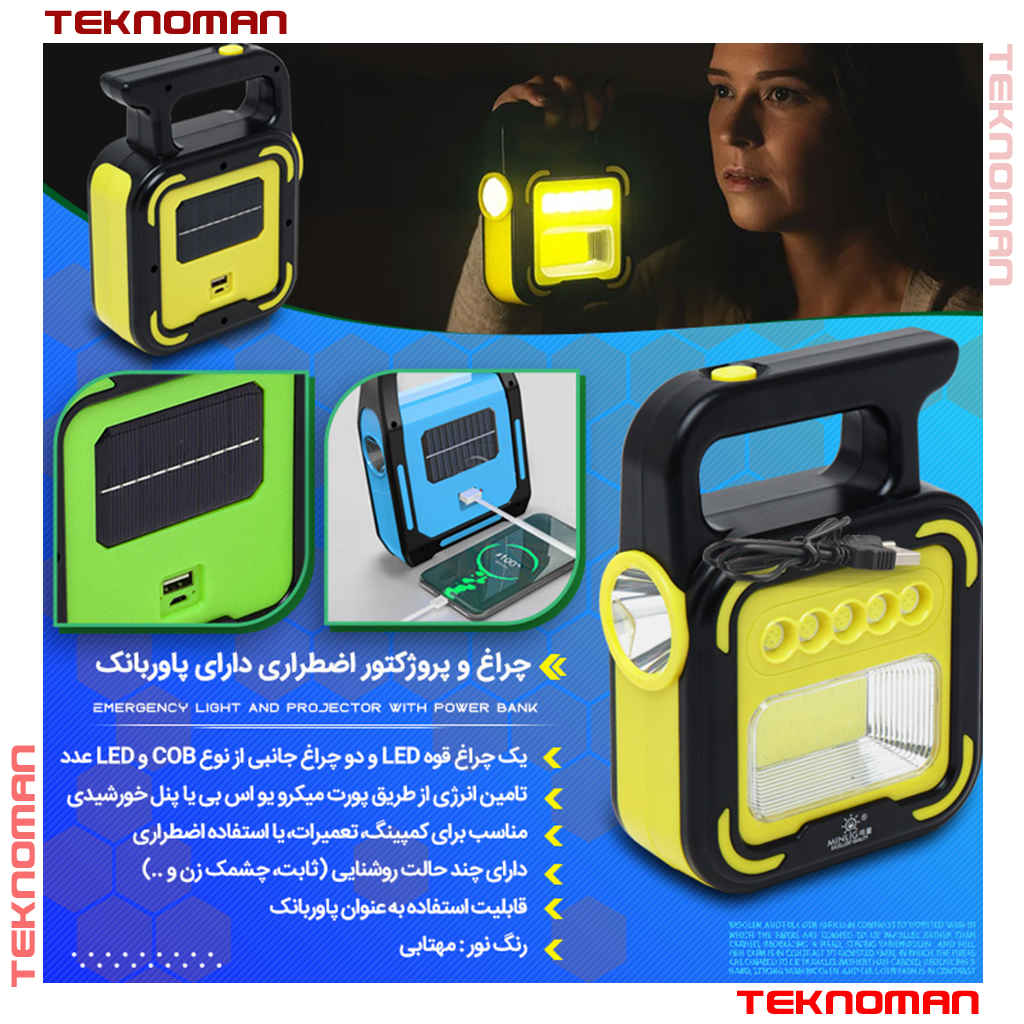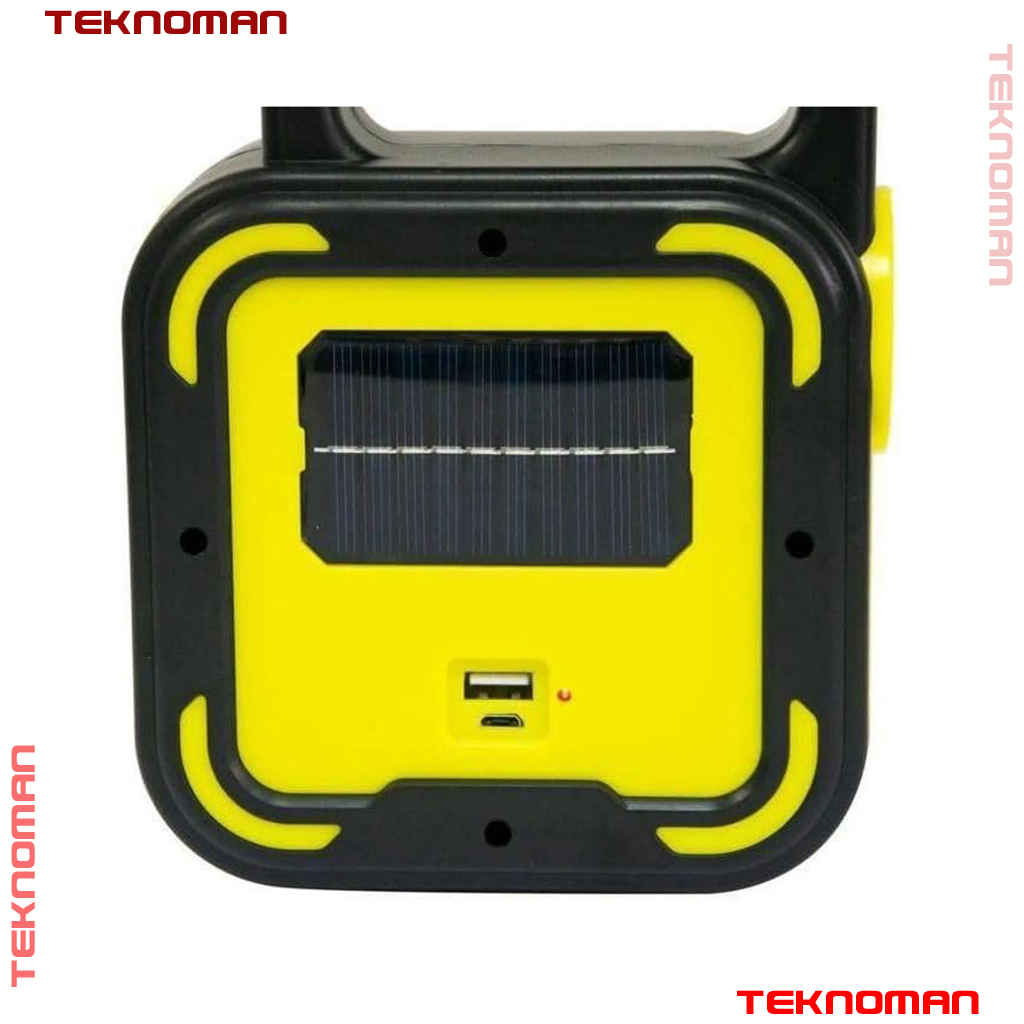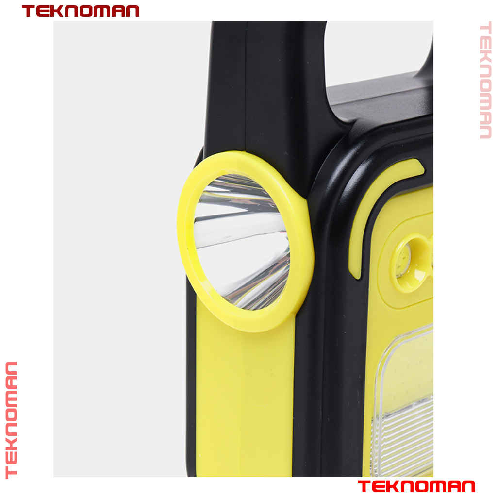 این چراغ و پروژکتور چندکاره با طراحی هوشمند و کاربردی، انتخابی ایده‌آل برای سفر، کمپینگ، تعمیرات و شرایط اضطراری است. وجود یک چراغ قوه LED قدرتمند در کنار دو چراغ جانبی از نوع COB و LED نوردهی گسترده، یکنواخت و با شدت مناسب را فراهم می‌کند.از لحاظ تأمین انرژی، محصول به‌صورت دوگانه کار می‌کند؛ هم از طریق پورت Micro USB شارژ می‌شود و هم به کمک پنل خورشیدی برای مواقعی که دسترسی به برق وجود ندارد. به همین دلیل همراهی مطمئن در سفر و طبیعت محسوب می‌شود.یکی از قابلیت‌های جذاب این چراغ، عملکرد پاوربانک آن است که امکان شارژ تلفن همراه و دستگاه‌های کوچک الکترونیکی را در شرایط ضروری فراهم می‌کند.